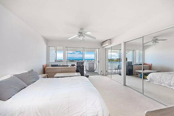 2つのベッドルームはすべて2階にあり、そのうちのマスタースイートには専用のラナイ、