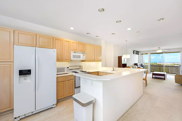そして屋根付きラナイへと続く広々としたキッチンが備わっています。