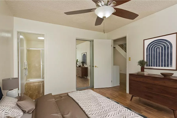 広々とした主寝室があり、快適さと実用性を実現。