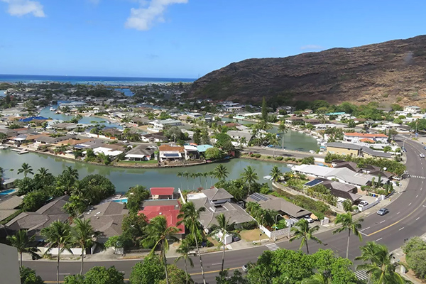 プール、マリーナ、運河を見渡し、マウナルア湾まで広がる、