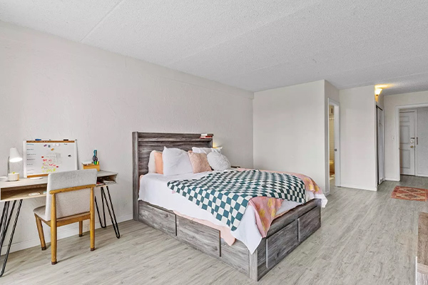 広々とした間取りは、ゆったりとしたリビングエリアと十分な広さの寝室を備えています。