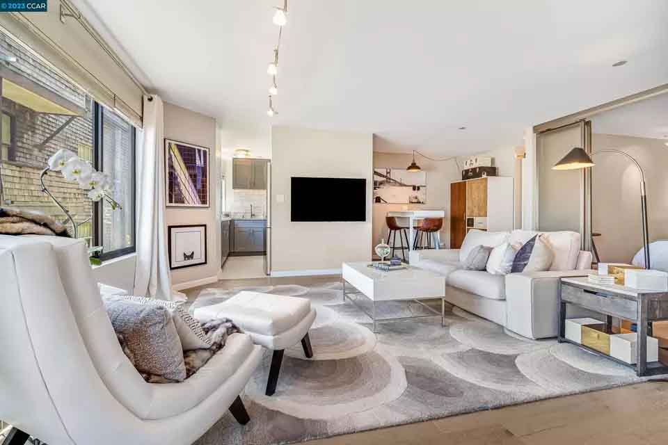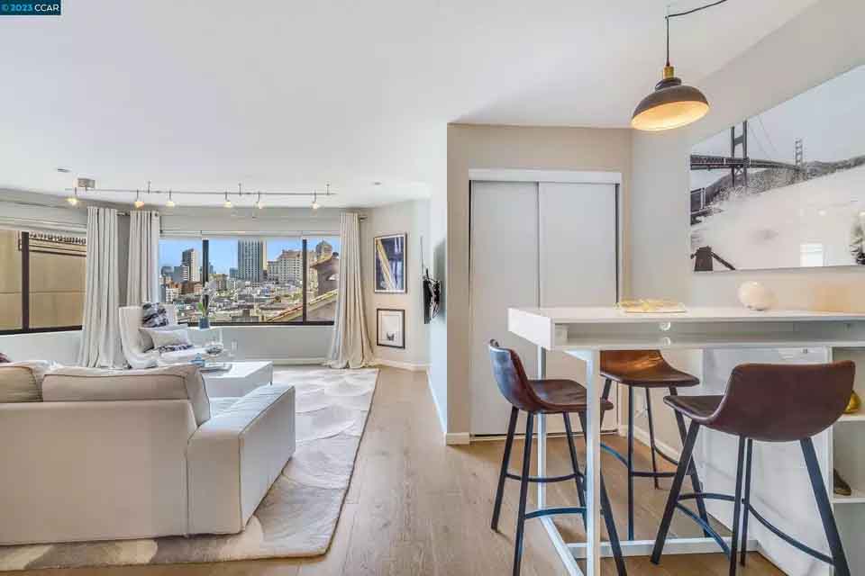 ロシアン・ヒルの高台に位置し、ソファ、ホームオフィス、