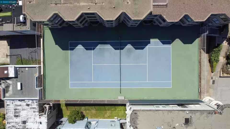 屋上にはテニスコートがあり、共有エリアのデッキでディナーを楽しんだり、