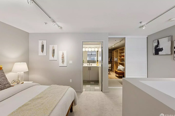 広々としたウォークインクローゼットはホームオフィスとしても容易に活用でき、専用バスルームも完備されています。