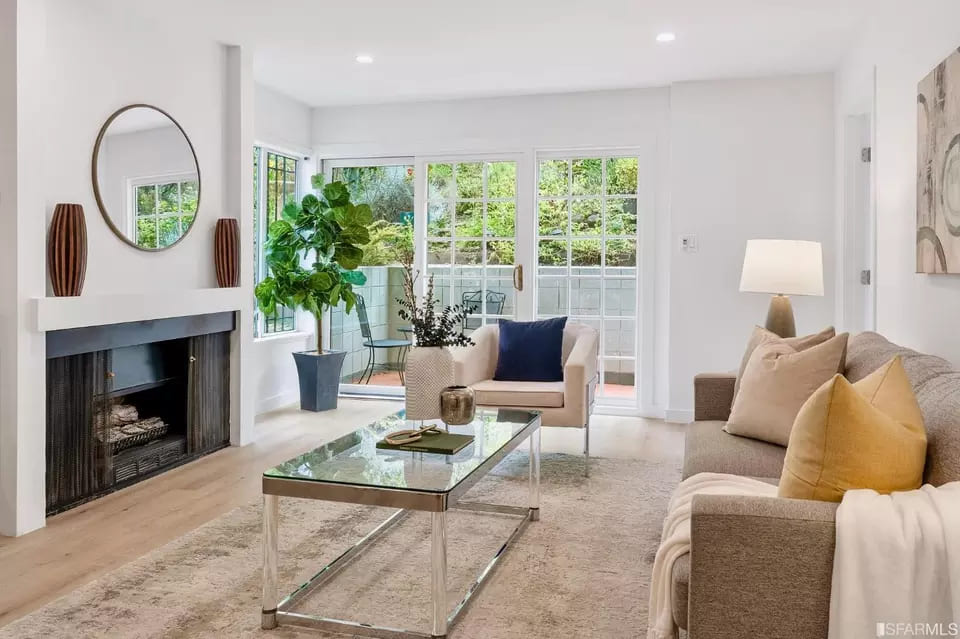 リビングルームとベッドルームには西向きのパティオドアがあり、自然光がたっぷり入ります。
